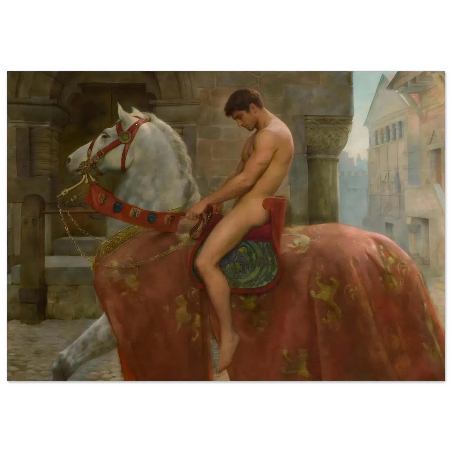 Based on John Collier’s Lady Godiva (1897), this final work flips the legend entirely. The rider is no longer punished by exposure. He owns it. Naked, composed, and sovereign, he rides without apology, the spectacle becoming an assertion rather than a sacrifice.