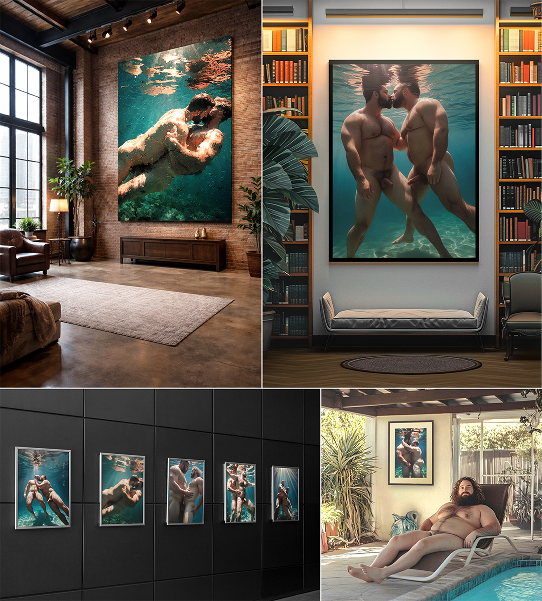Underwater Bears brings together two Bare Bear Fantasy collections: the newly revised Underwater Fun from 2024 and the all-new Underwater Fantasy series. Together, they explore intimacy, play, connection, and just plain old nude fun beneath the surface—sometimes lighthearted, sometimes cinematic, always body-positive.